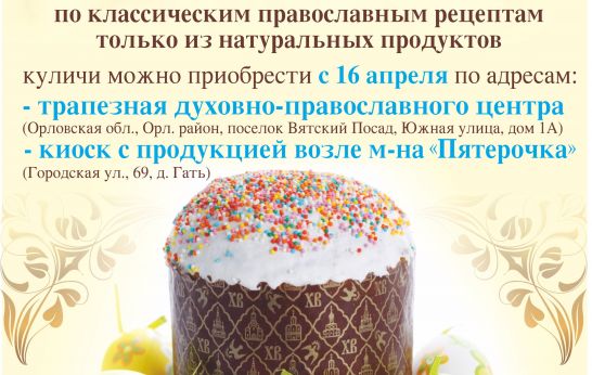 "Духовно-православный центр Вятский Посад" предлагает Пасхальные куличи.