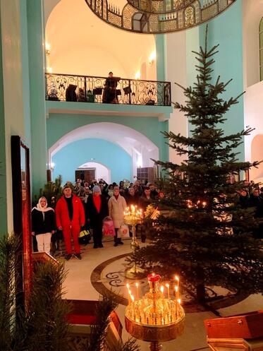 В Крещенский сочельник, в храме Сретения Господня Духовно-православного центра "Вятский Посад" состоялось праздничное Богослужение - Царские часы, затем Вечерня переходящая в Божественную Литургию святителя Иоанна Златоуста, по окончании которой состоялся крестный ход и Великое освящение воды на "Иордане".