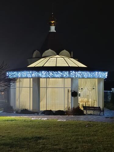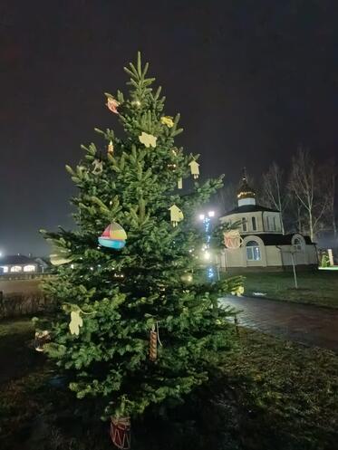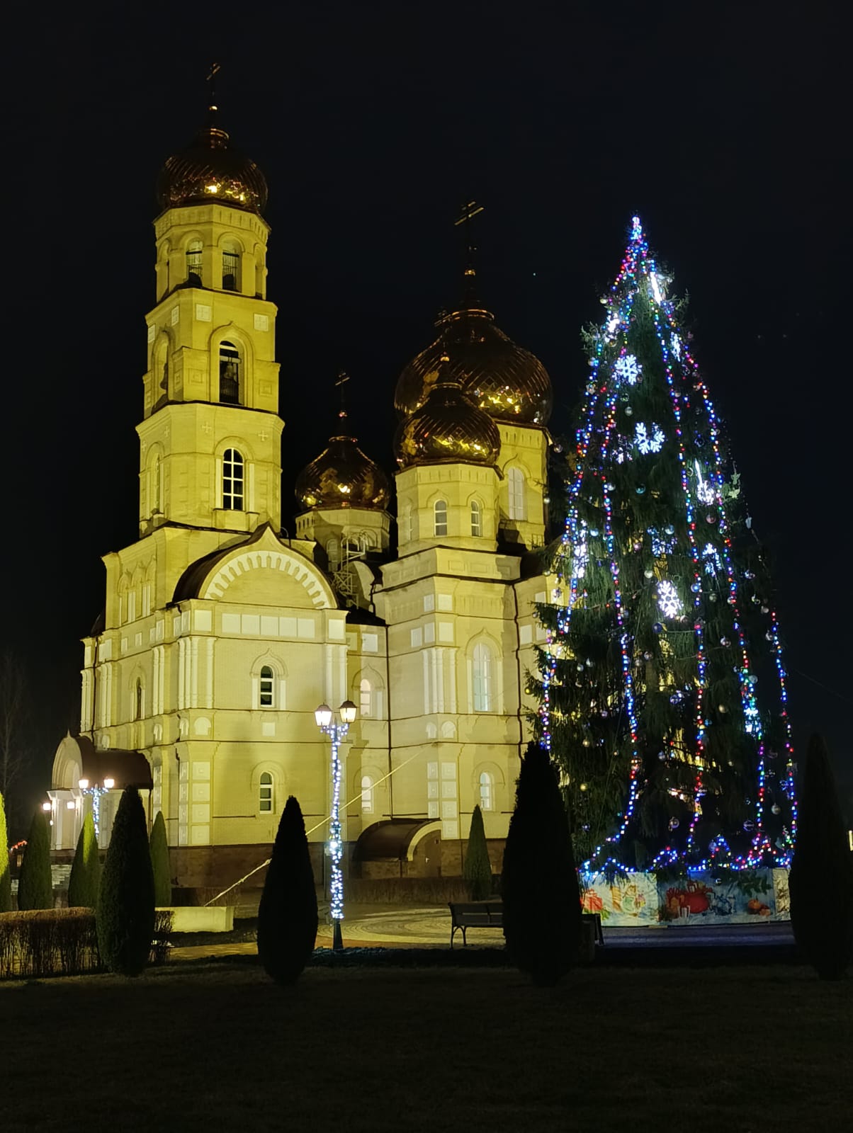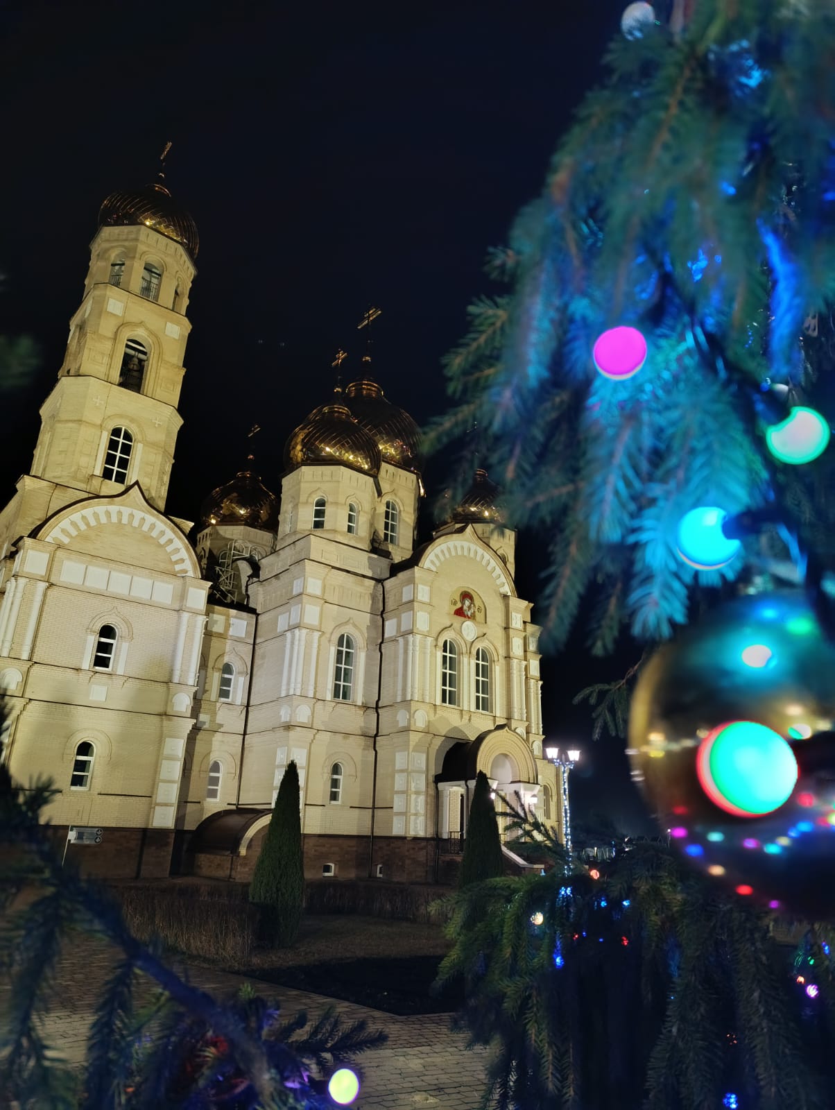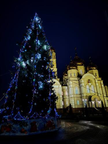 В духовно‑православном центре «Вятский Посад» зажглись праздничные огни. Величественная ель предстала в полном убранстве: её украшают сверкающие игрушки, разноцветные шары и переливающаяся гирлянда.