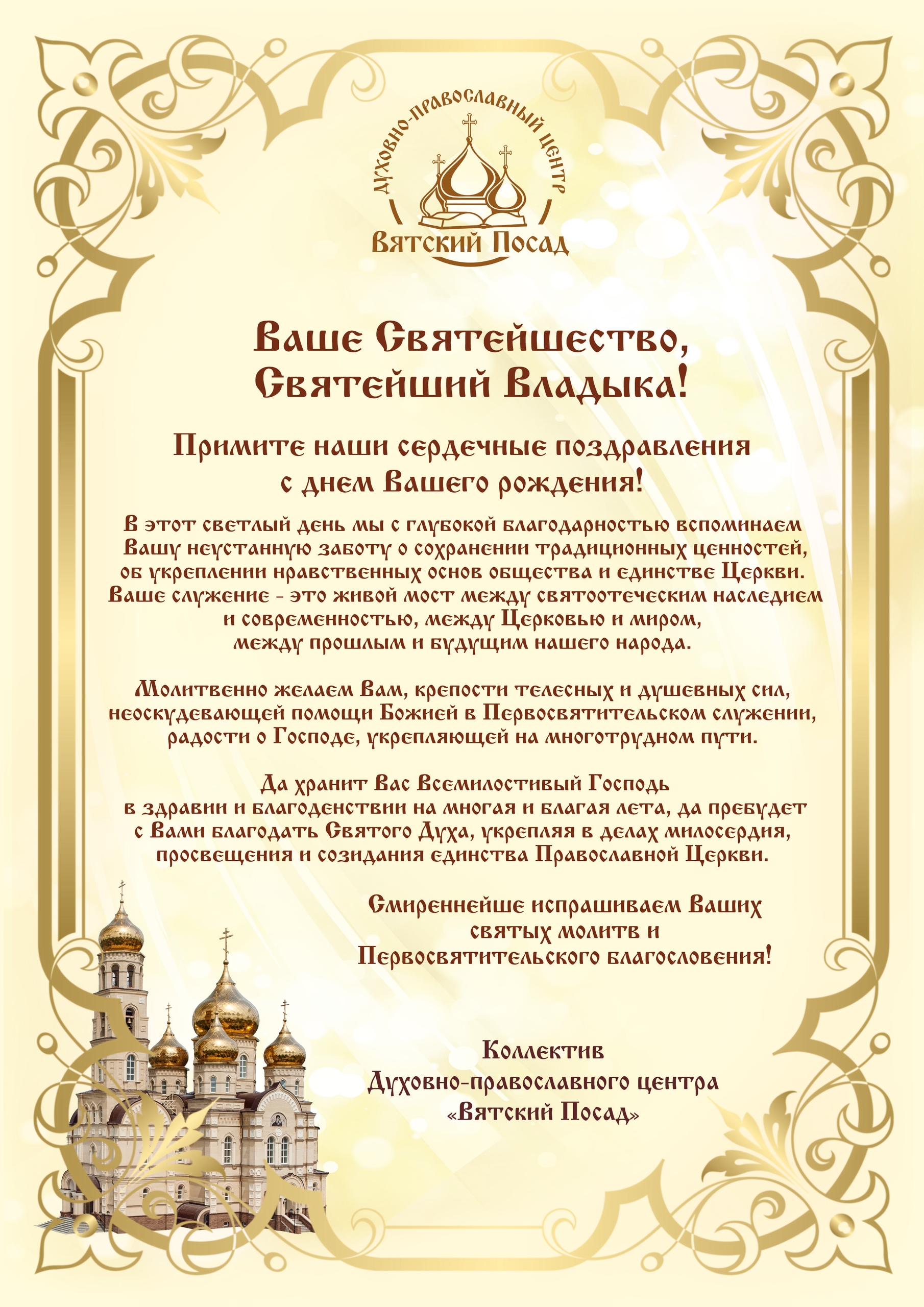 Поздравление с днём рождения Святейшему Патриарху Московскому и всея Руси Кириллу