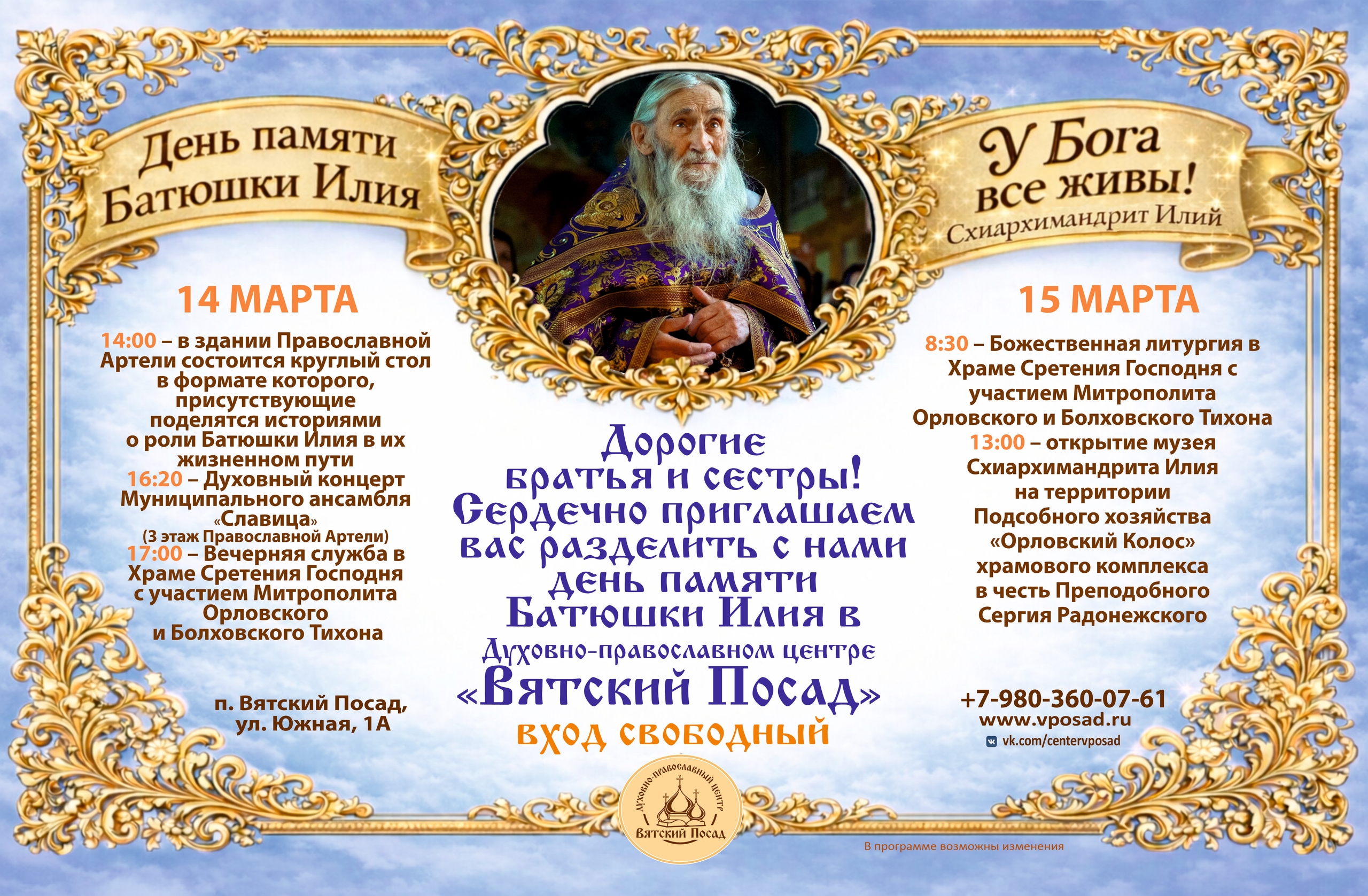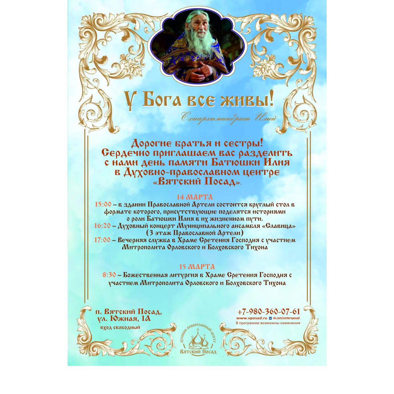 Приглашаем на день памяти батюшки Илия в Вятском Посаде