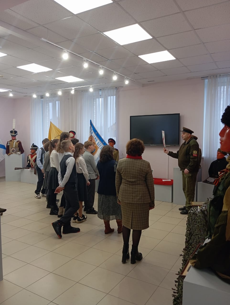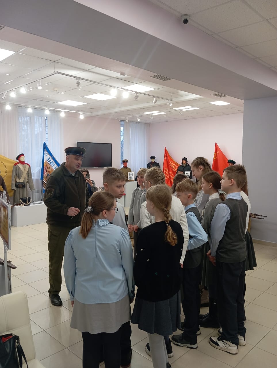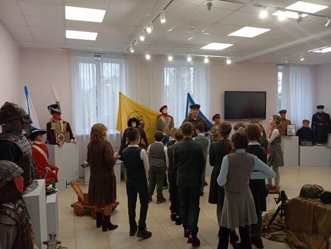 В год защитника отечества «Духовно-православный центр "Вятский Посад" совместно с ВИПК « Орловская пехота», руководитель Сретенский Сергей Юрьевич, провели для обучающихся «Орловской православной гимназии во имя преподобного Алексия, человека Божия» увлекательное путешествие в героическое прошлое родного края . В доступной и интересной форме детям было рассказано о мало известных героях земли Орловской таких, как Дмитрий Пожарский одержавший победу над поляками в местечке Царёв брод в 1615 году . Алексей Ермолов и Денис Давыдов прославили себя в Отечественной войне 1812 года , а капитан первого ранга уроженец Мценского уезда Дмитрий Ильинский стал героем обороны Севастополя 1855 году. Неувядаемой славой покрыл себя в годы Первой мировой войны орловец Михаил Дмитриевич Поспелов этот герой пограничник стал прототипом таможенника Верещагина в любимом фильме космонавтов ( они смотрят этот фильм по традиции перед полётом) « Белое солнце пустыни». В годы Великой отечественной войны тысячи орловчан совершили подвиги, но есть среди них и такие, о героизме которых знает вся страна. Николай Сиротинин остановивший из своей пушки в одиночку танковую колонну около белорусского города Кричев опроверг древнею поговорку : «Один в поле не воин !» А героини лётчицы ночного женского лёгкого бомбардировочного полка Марина Чечнева и Надежда Попова смогли совершить невозможное на учебных фанерных самолётах ПО -2 причинить такой урон фашистам , что те в бессильной злобе прозвали их « Ночными ведьмами !», обе они стали героями Советского Союза. Осенью 1941 в боях с немецкими захватчиками на орловской земле родилась танковая гвардия , танкисты Катукова смогли остановить и частично разгромить танковые силы гитлеровцев у деревни Первый Воин Мценского района . Залегощенская земля дала нашей Родине бесстрашного командира роты Владимира Мартынова ,который смог выполнить невыполнимое задание командования в ходе операции по освобождению Белоруссии. Рота старшего лейтенанта Мартынова смогла захватить и 19 часов удерживать высоту у белорусского города Быхов. Герои погибли, но не отступили! Шести героям битвы за высоту Безымянную было присвоено звание Героев Советского Союза , а в 1984 году на месте боя благодарный белорусский народ поставил величественный мемориал памяти . В своём рассказе патриоты из ВИПК « Орловская пехота» обратили внимание и на героев войны в Афганистане . Во время выполнения интернационального долга два наших земляка орловца удостоились высоким званием героев Советского Союза - это войны разведчики Юрий Миролюбов и Юрий Шиков . В завершении экскурсии гимназисты могли сделать памятное фото у экспонатов и общее фото на фоне узла обороны у пулемёта Максим и макетами стрелкового оружия и вооружения солдат Красной армии .