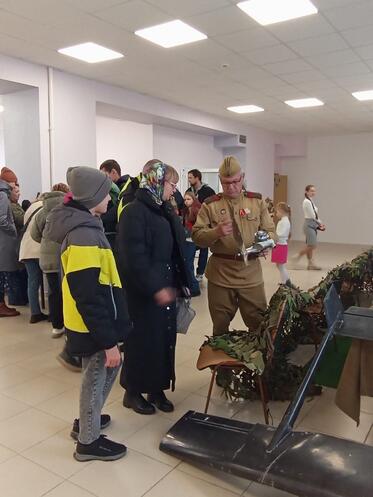 Особый интерес у детей вызвала выставка по СВО , на которой было представлено оружие и униформа солдат современных защитников нашего Отечества , а также трофеи и даже обломки БПЛА врага . Рядом с этой локацией курсант ВИПК « Орловская пехота» Владислав Гусак проводил занятие по стрелковой подготовке - упражнение сбор разбор ММГ - Автомата Калашникова , наградой за выполненный норматив была возможность прокатится на реплике фронтового автомобиля вездехода ГАЗ -67, воссозданного патриотом из города Кимовск Тульской области Мальцевым Николаем Сергеевичем .